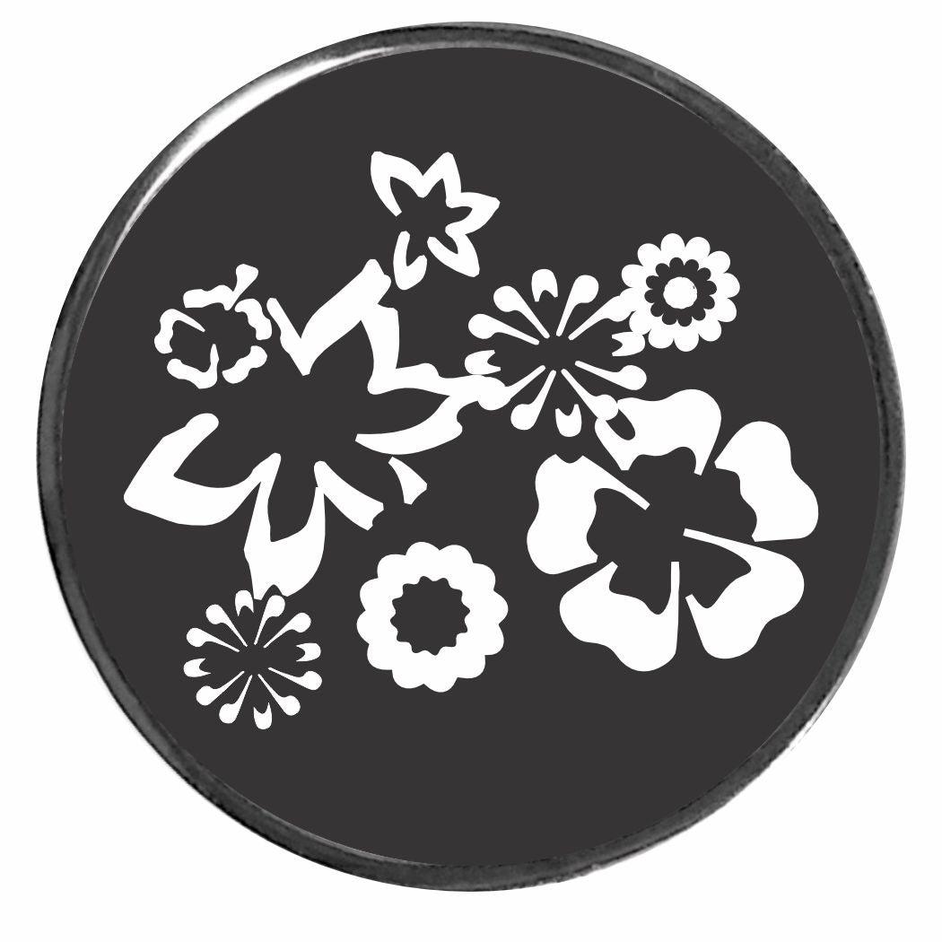 PM-885 Black & White Flowers Photo Metal Badge Holder - Pack of 3