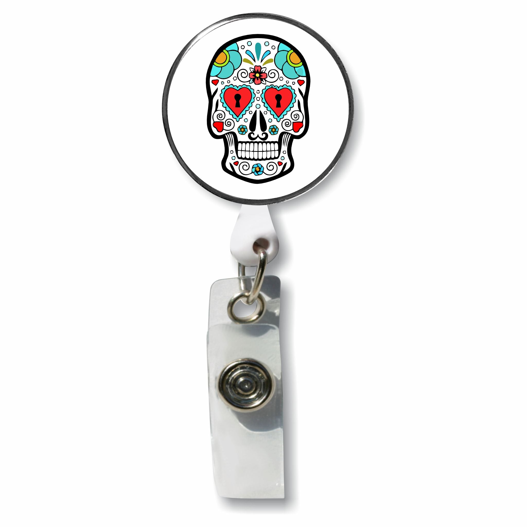 White Skull Photo Metal Retractable Badge Holder