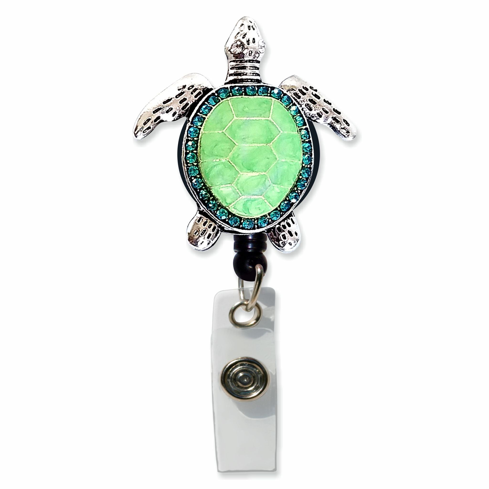 Turtle Retractable Badge Holder with Sparkly Rhinestones