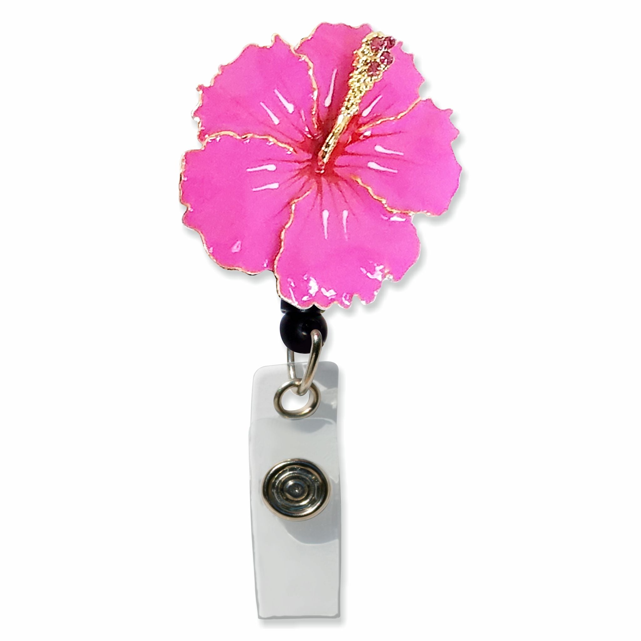 Hibiscus Retractable Badge Holder with Sparkly Rhinestones