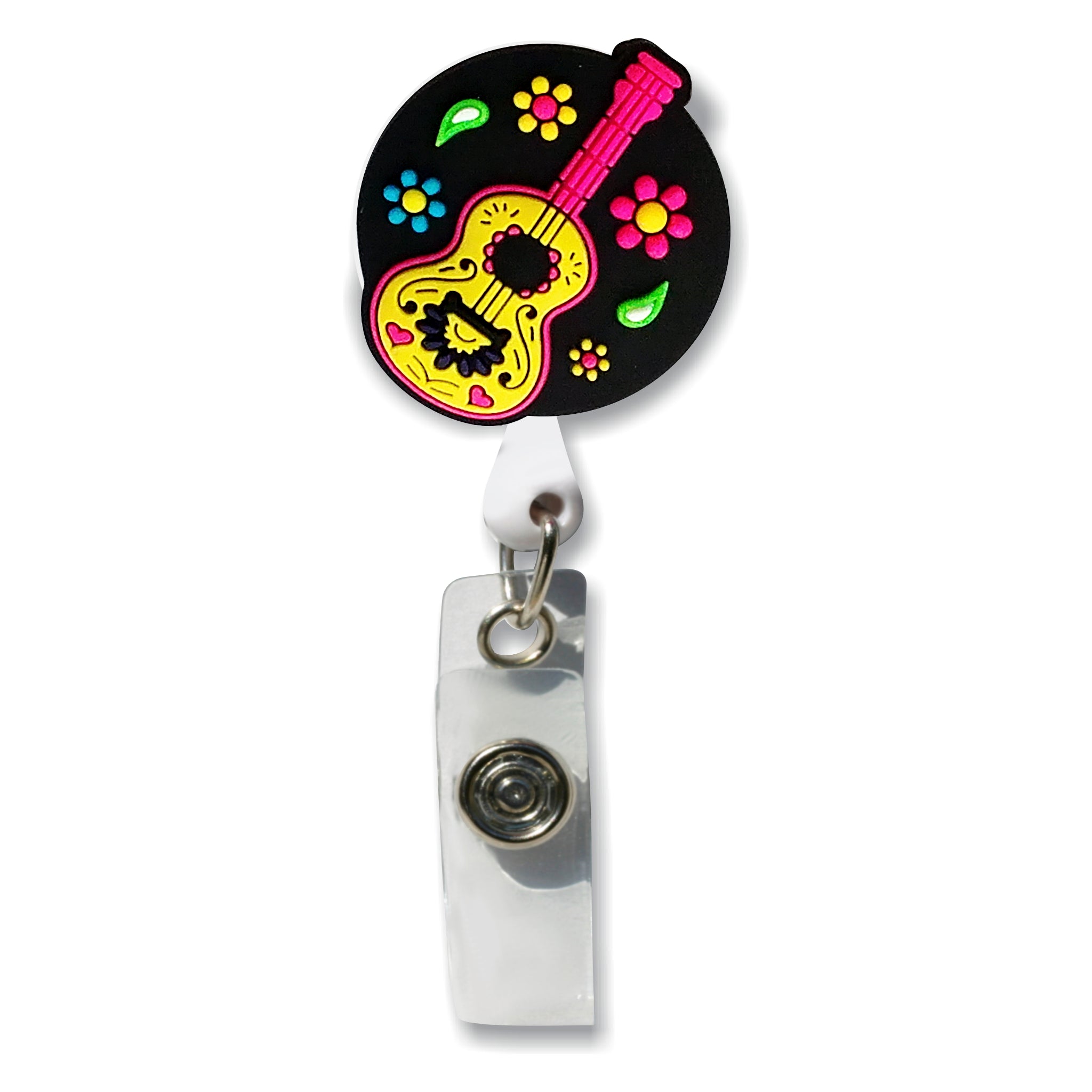 Guitar Retractable Badge Holder with Soft Rubber 3D Design