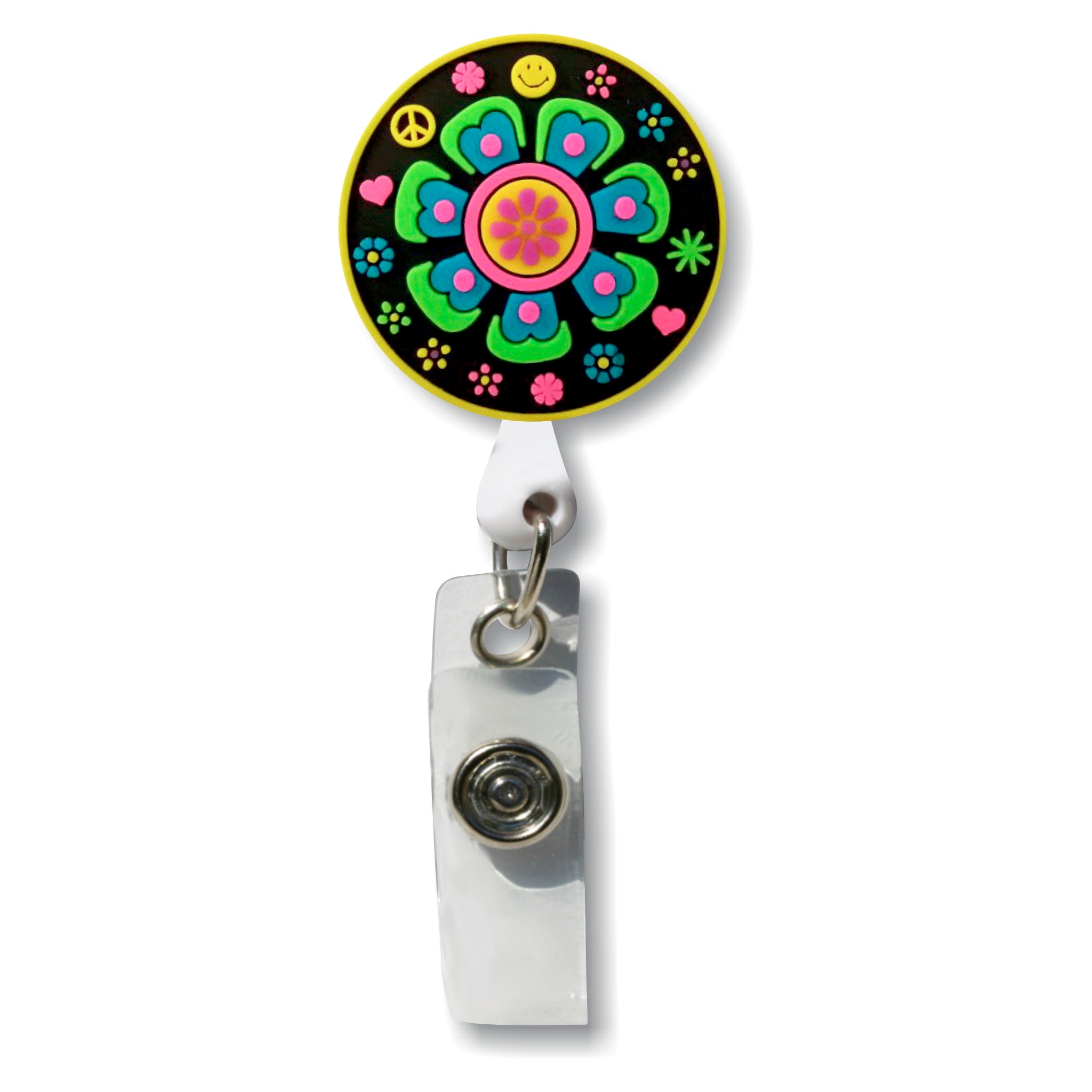Retro Flower Retractable Badge Holder with Soft Rubber 3D Design